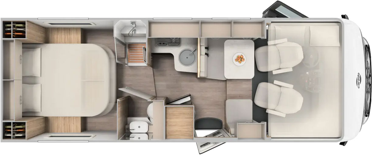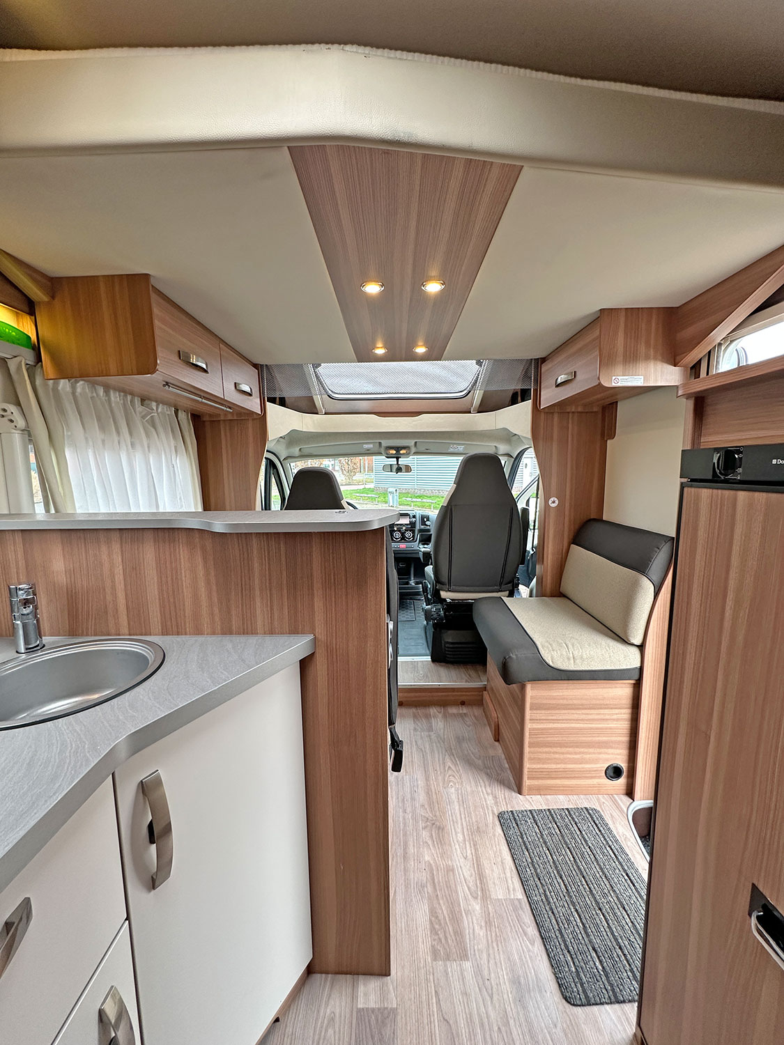 Egal ob verwinkelte Innenstadtgassen oder weitläufige Strandpromenaden: Dieses Wohnmobil ist der kleine große Begleiter für Deine Abenteuer. Außen kompakt, bietet er innen genügend Platz für alles, was das Abenteurerherz begehrt.
